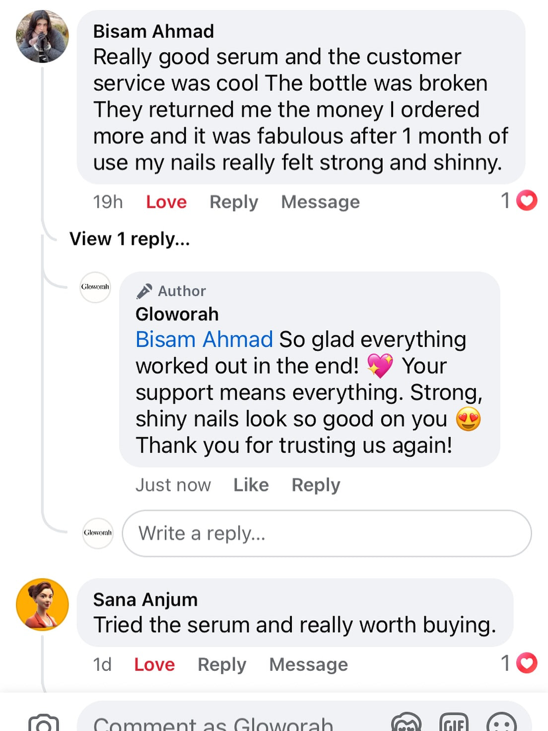 احصلي على أظافر أقوى وأطول في غضون 3 إلى 4 أسابيع مع زيت نمو الأظافر من GLOWORAH (زيت البشرة)! مليئة بـ المكونات الطبيعية مثل فيتامين E والبيوتين والزيوت الطبيعية 100% مثل زيت الخروع وزيت الجوجوبا وزيت بذور العنب وزيت الثوم وزيت جوز الهند المجزأ وزيت إكليل الجبل واللافندر ل يغذي بعمق، ويحارب الالتهابات، ويصلحها. يقوي الأظافر، يرطبها ويجعلها أكثر لمعانًا ويعزز نمو سريع.